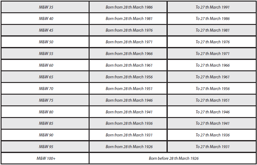 The European Masters Athletics Championships are open only to men and women who were born on or before 27th March 1991 and who are physically fit.